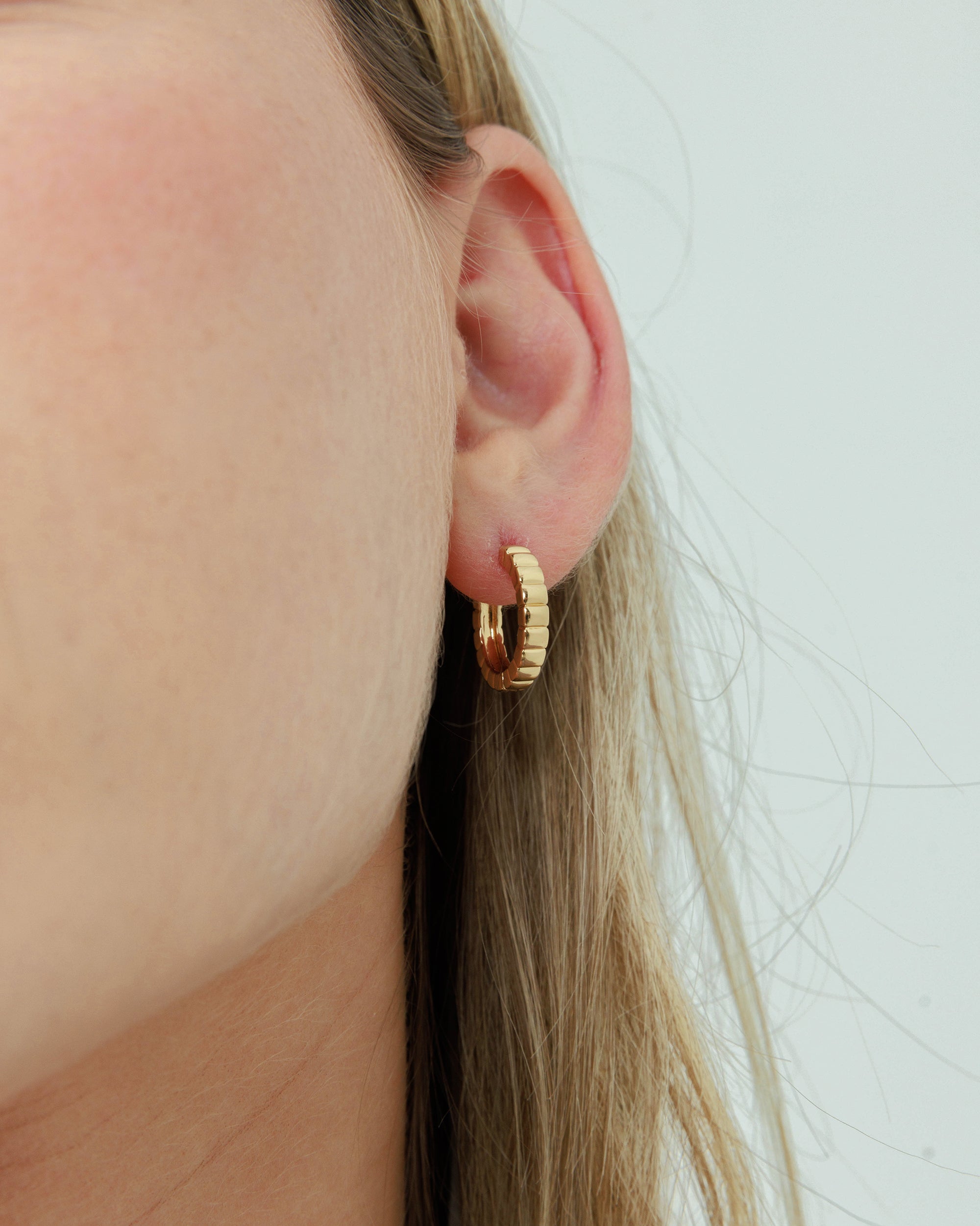 The Medium Jett Hoops feature soft sculpted ridges that catch the light beautifully, adding just the right amount of shine and texture. A touch bolder than our Regular size, they offer a perfectly balanced statement while still feeling easy and versatile. Ideal for stacking, dressing up, or keeping it simple  - effortlessly timeless and made for daily wear.