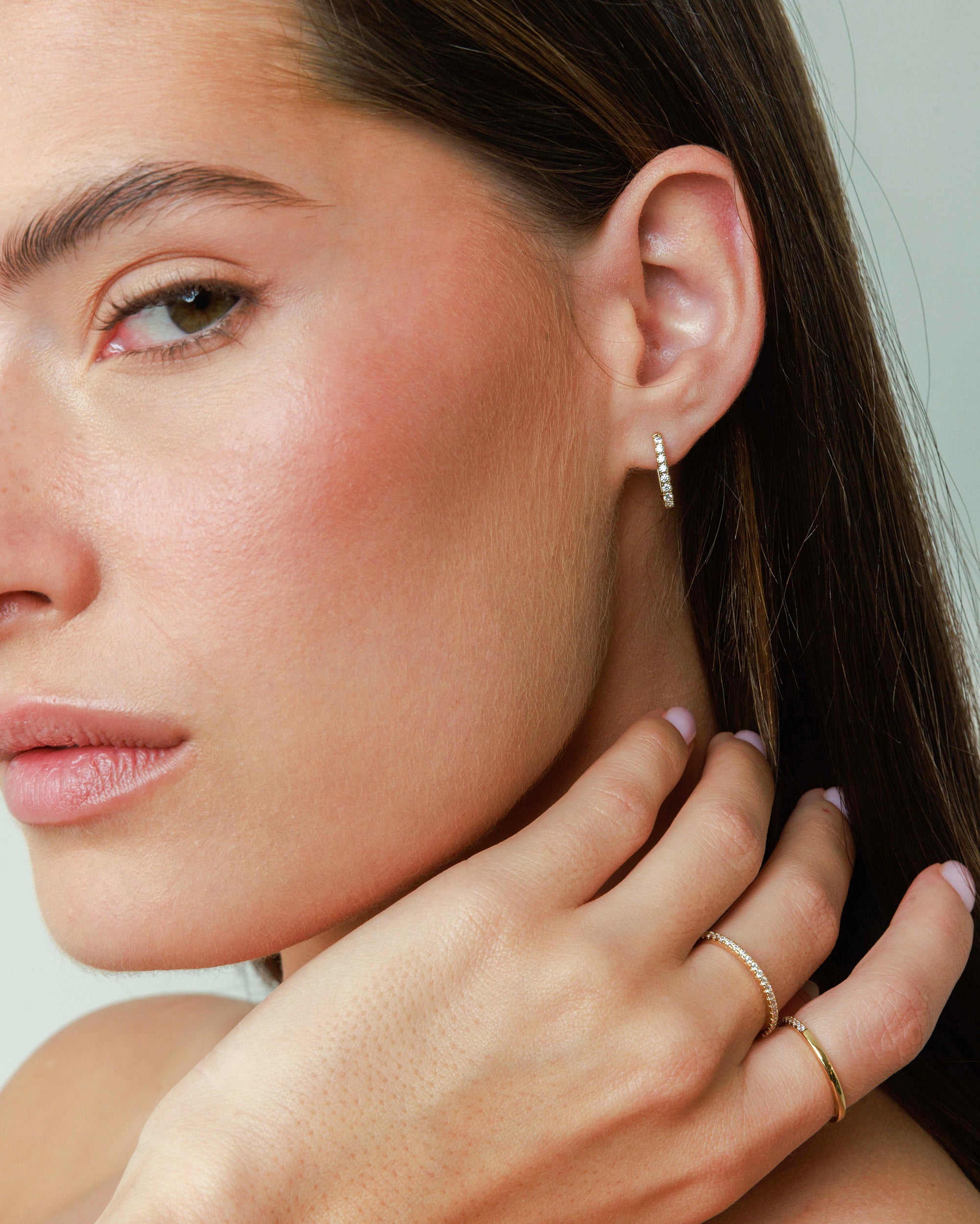 Our Pave Link Hoops take the classic link shape and elevate it with a sleek row of brilliant CZ stones for just the right amount of sparkle. Lightweight, modern, and effortlessly polished, they’re the kind of hoops you’ll reach for every day - from coffee runs to nights out.  Simple. Chic. Sparkly in all the right ways.